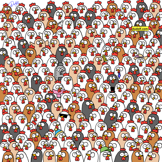 Test: only 4% of people can find three owls among chickens – test yourself!