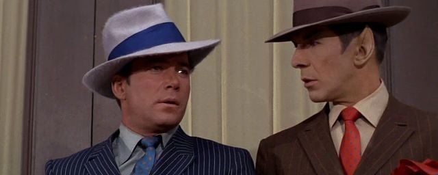 The story seems to be set on an Earth-like planet steeped in a 1930s gangster atmosphere, such as the original Star Trek episode “Some Action” (Season 2, Episode 17), where the crew of the Enterprise lands on a planet (Sigma Iotia II) that lives in the 1920s Chicago atmosphere.