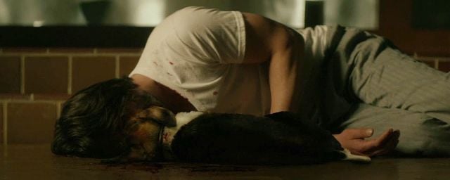 To soften the brutality of the scene, Leitch and Stahelski chose not to show anything directly: the dog’s death is suggested only by a trail of blood leading to John, a sober but terrifyingly effective set-up.